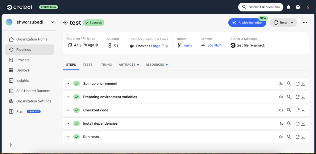 You now have a fully functional CI/CD pipeline for a simple Python application using CircleCI! This setup automatically runs your tests on every code push, improving code quality and developer confidence.